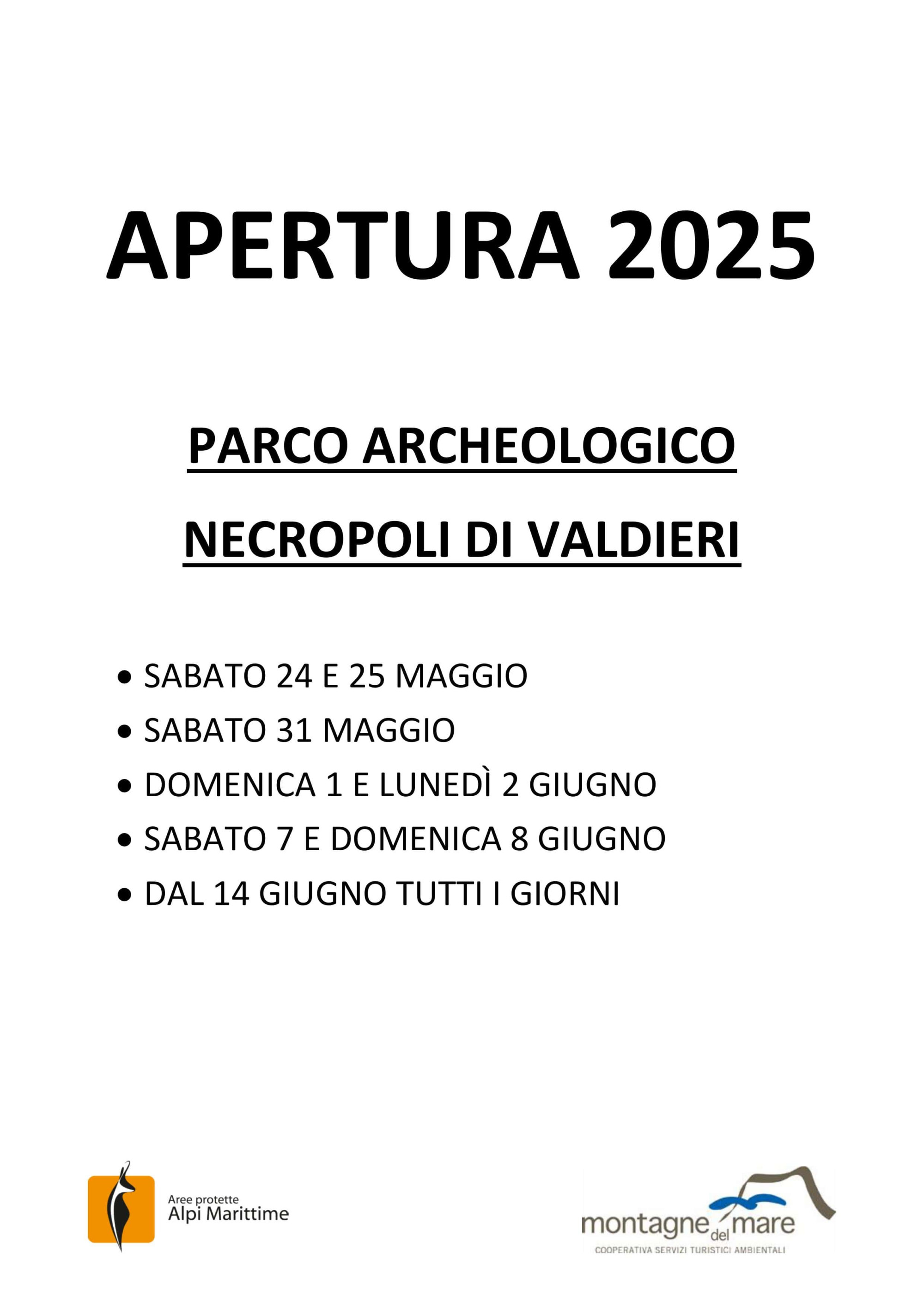Ricordiamo inoltre che il Parco Archeologico è gestito tutti i fine settimana di Maggio e dal 14 Giugno tutti i gironi.
